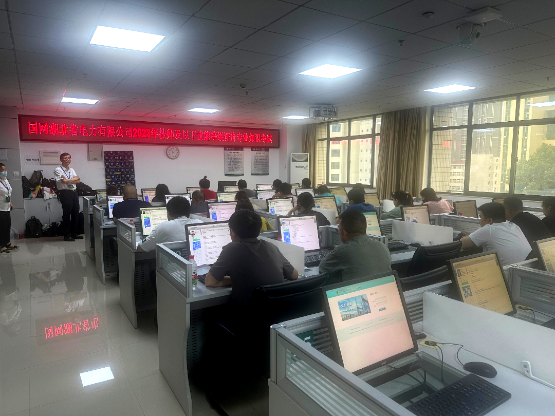 近日,国网湖北省电力公司2023年技师及以下技能等级评价专业知识考试在技培中心(武汉电力职业技术学院)进行,本次考试分6批实施,涵盖了48个工种中级工、高级工和技师三个级别,共计4474名员工参加考试。